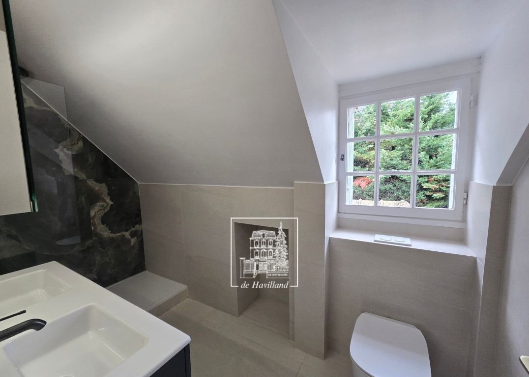 L'Agence Immobilière De Havilland vous présente : Face aux pelouses du Vésinet, belle maison sur environ 2 600m² de terrain, grand calme. A 850m du RER Le Vésinet-Le Pecq. Hall d'entrée, belle réception d'environ 60m² (avec cheminée) de plain pied sur grande terrasse, salle à manger, cuisine aménagée (avec équipements), cellier, chambre avec salle de douche. A l'étage : trois chambres enfants, salle de bain et salle de douche, grande suite parentale avec dressing et salle de bains. Sous sol Garage. Annexe avec cabinet de toilettes LOYER CC = Charges de Copropriété comprises. Honoraires : Visite, constitution du dossier, rédaction du bail et d’état des lieux d’entrée pour : Une location vide ou meublée en résidence principale (loi ALUR) : 11, 13 ou 15 €/m² selon communes. Une location meublée, en résidence secondaire, ou logement de fonction : 1 mois de loyer TTC