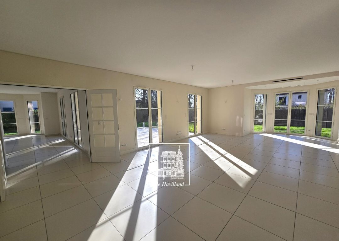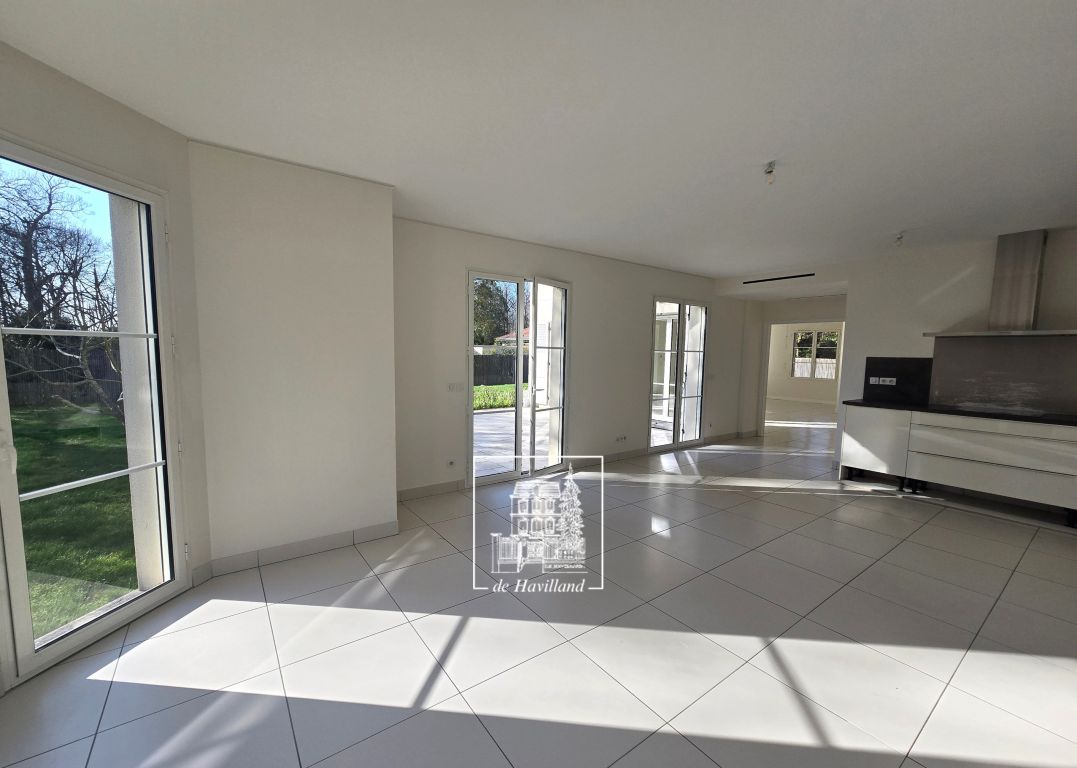 L'Agence Immobilière De Havilland vous présente : Sur environ 1000 m² de terrain, villa récente avec de très beaux volumes familiaux. Prestations de grande qualité. Séjour double de 62m² de plain pied sur terrasse et jardin, cuisine aménagée de 38m², 5 chambres de 12 à 20 m² dont une vaste suite parentale et une autre suite en rez-de-chaussée, 2 salles de bain et 2 salles de douche. Garage et facilités de parking dans l'enceinte de la propriété. Entretien jardin, chéneaux et chaudière inclus. Maison lumineuse avec très bonne organisation de l'espace au coeur d'un secteur très résidentiel. Honoraires : Visite, constitution du dossier, rédaction du bail et d’état des lieux d’entrée pour : Une location vide ou meublée en résidence principale (loi ALUR) : 13 ou 15 €/m² selon communes. Une location meublée, en résidence secondaire, ou logement de fonction : 1 mois de loyer TTC