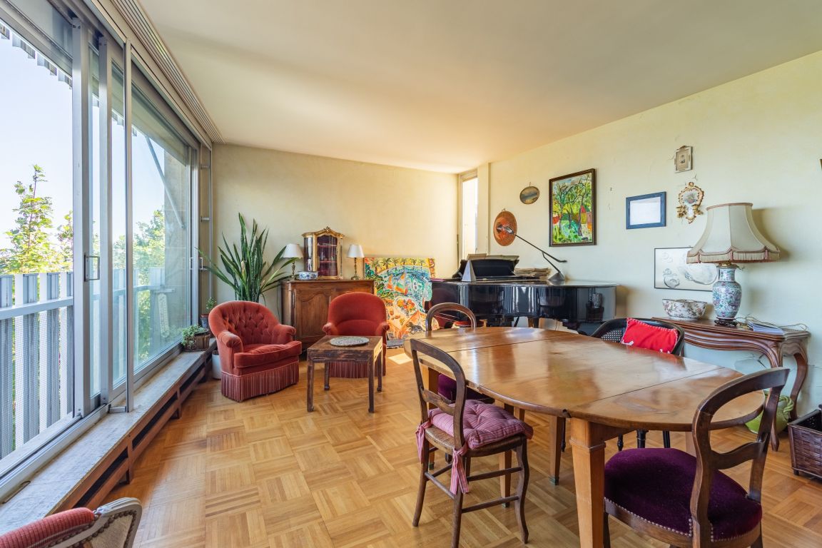 L'Agence Immobilière De Havilland vous présente : Très proche gare du Val d'Or, commerces de proximité, Parc des Tourneroches et école du Val d'Or, bel appartement familial dans immeuble de standing très bien tenu. Entrée spacieuse, vaste double séjour offrant très belle vue dégagée sur Paris, cuisine séparée de bonne taille facile à réaménager, trois grandes chambres toutes sur balcon, dressing, salle de bain et salle de douche. Emplacement de parking et cave en sous-sol. Possibilité d'acheter en sus une chambre de service au rez-de-chaussée de l'immeuble (valeur : 90 000 euros). Grand potentiel d'aménagements et de modernisation pour cet appartement lumineux et très bien placé.