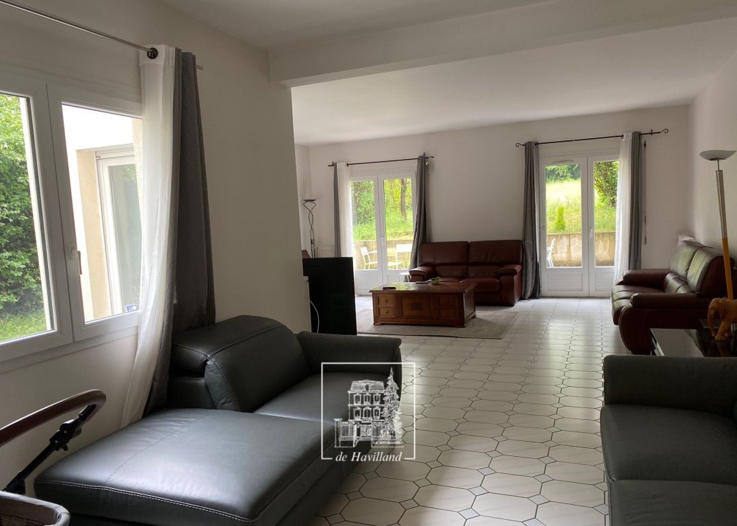 Maison familiale très lumineuse avec beaux volumes. Couloir d'entrée, séjour donnant sur jardin sud, salle à manger avec accès terrasse, vaste cuisine aménagée, suite parentale avec vue sur jardin comprenant bureau, chambre et salle de bain (+cabine de douche), quatre chambres enfants toutes avec parquet au sol et placards, deux salles de bain (dont une avec cabine de douche en plus de la baignoire), lingerie/dressing, au sous-sol : grand garage, chaufferie et buanderie. Spacieuse, avec une bonne répartition des volumes et au calme. Très agréable jardin sud. Prévoir contrat entretien jardin en plus. Honoraires : Visite, constitution du dossier, rédaction du bail et d’état des lieux d’entrée pour : Une location vide ou meublée en résidence principale (loi ALUR) : 13 ou 15 €/m² selon communes. Une location meublée, en résidence secondaire, ou logement de fonction : 1 mois de loyer TTC